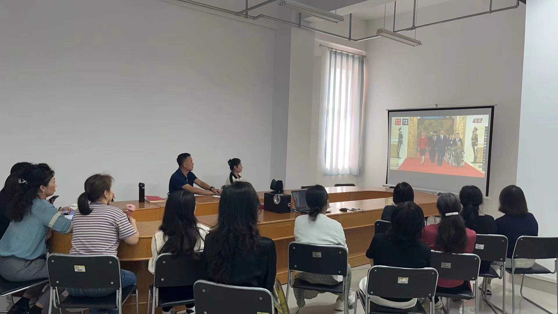 2024-10-039月29日上午,图书馆组织全体馆员在图书馆会议室全程收看了中华人民共和国国家勋章和国家荣誉称号颁授仪式实况直播。
